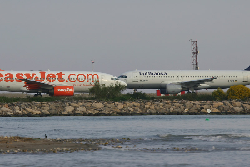 G-EZKD Die Konkurrenten für einmal ganz nahe: Boeing küsst Airbus, billig küsst teuer ;) Very close for one time: Boeing is kissing Airbus, cheap is kissing expensive! | |